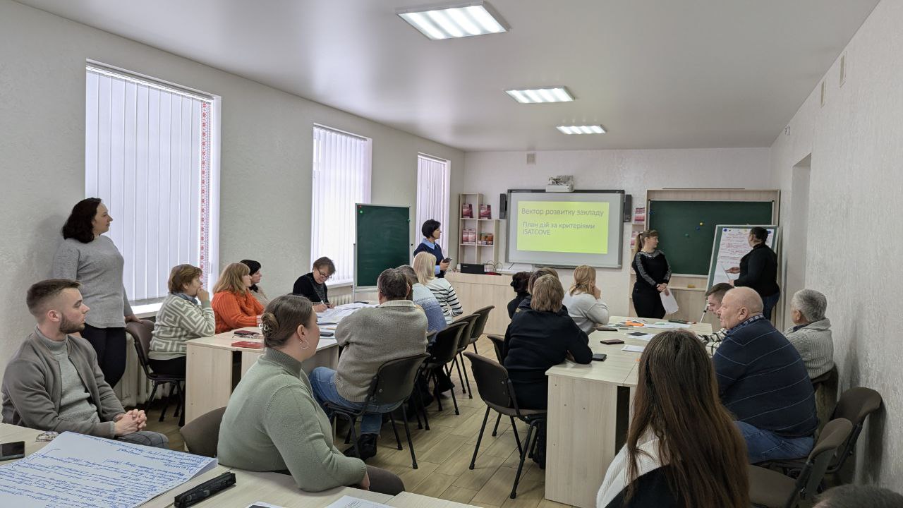Педагоги активно обговорювали сильні сторони закладу, проблемні зони та можливості для вдосконалення. Критерії ISATCOVE допомогли системно розкласти всі ідеї по поличках і зрозуміти, які кроки варто зробити першими.