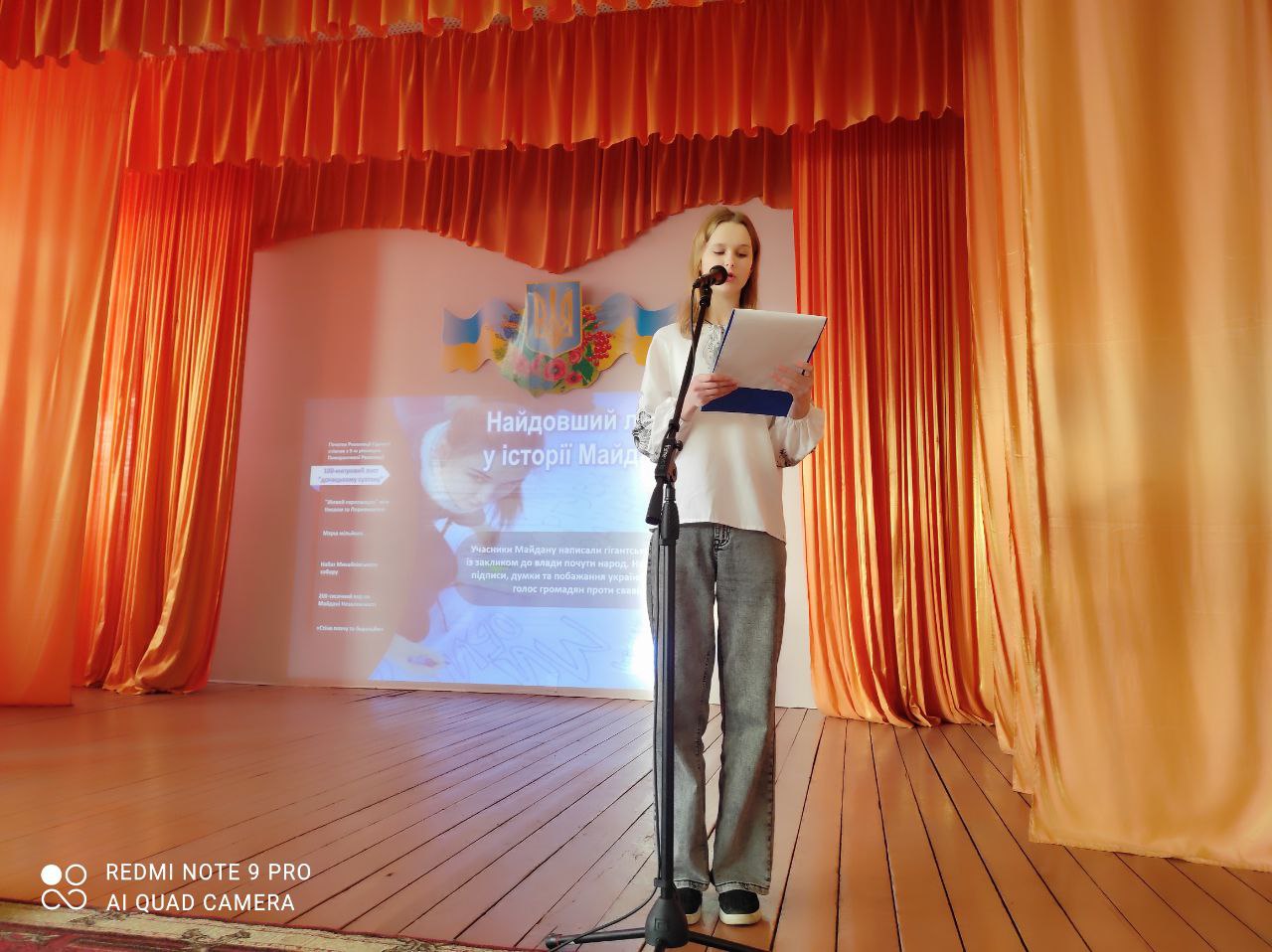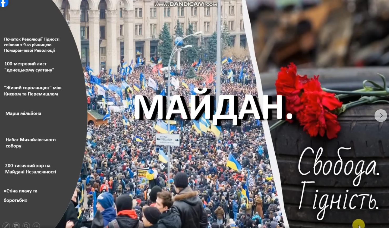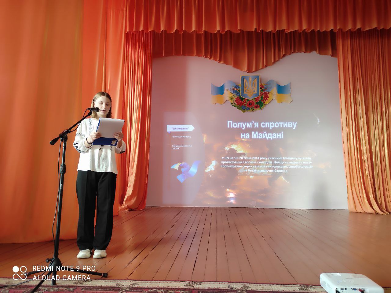 Ведучі розповіли про події Помаранчевої революції та Революції Гідності, про подвиг людей, які вийшли на Майдан заради правди, демократії та європейського майбутнього України. Вона наголосили на важливості пам’ятати не лише факти й дати, а й людські долі – жертовність і незламний рух українців до свободи.